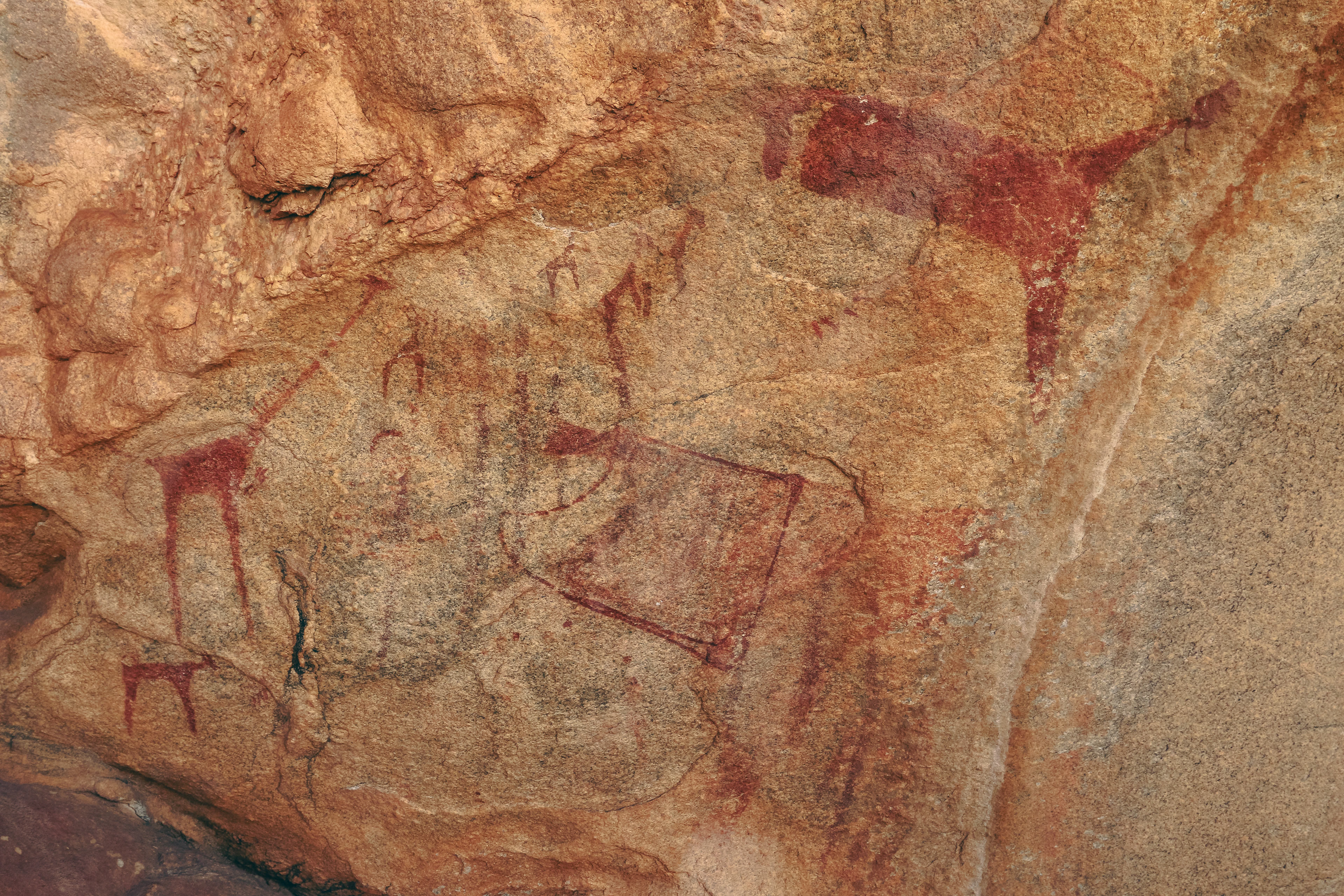 The paintings were extraordinary. Cattle with impossibly long, curved horns. Human figures dancing and in procession, some holding bows, others with their arms raised. The pigments still vivid after ten thousand years, protected by the granite overhangs from rain and direct sun. These painting were older than Stonehenge, older even than the Great Pyramids of Egypt, and possibly dating back to the time of Göbekli Tepe.